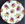 White base, robin egg blue trim, with flowers on center